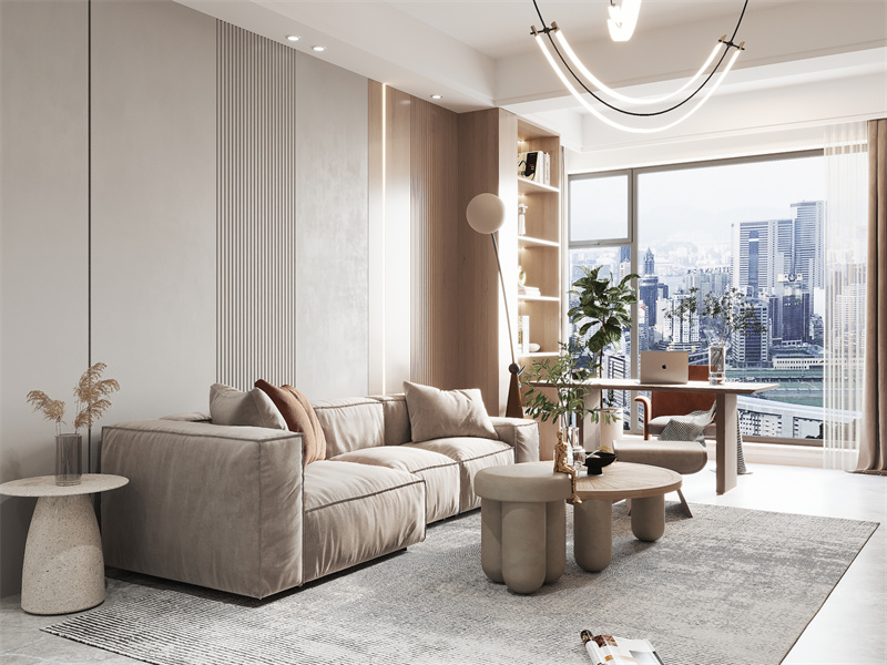 以米白、深灰的低饱和色调定克制基调,浅棕与木饰面注入温暖质感,皮质、石材的点缀强化精致度。冷暖材质碰撞出层次,却无冗余装饰,让空间在简约形制里,既显整洁秩序,又藏生活温度,避免寡淡感。