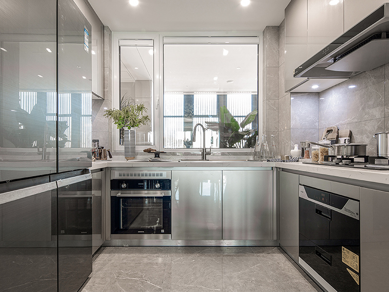 根据厨房户型的大小确定橱柜的布局,U型、L型、一字型,或是配上岛台的围合布局,橱柜的设计带领着厨房整体的颜值和实用性,必须慎重挑选。