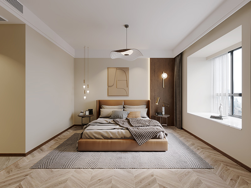在装修卧室空间时,要注重对宁静氛围的营造,建议做好隔音设计。像是墙体、门窗和屋顶地面等等,都可以增加隔音材料,从而实现隔音设计。