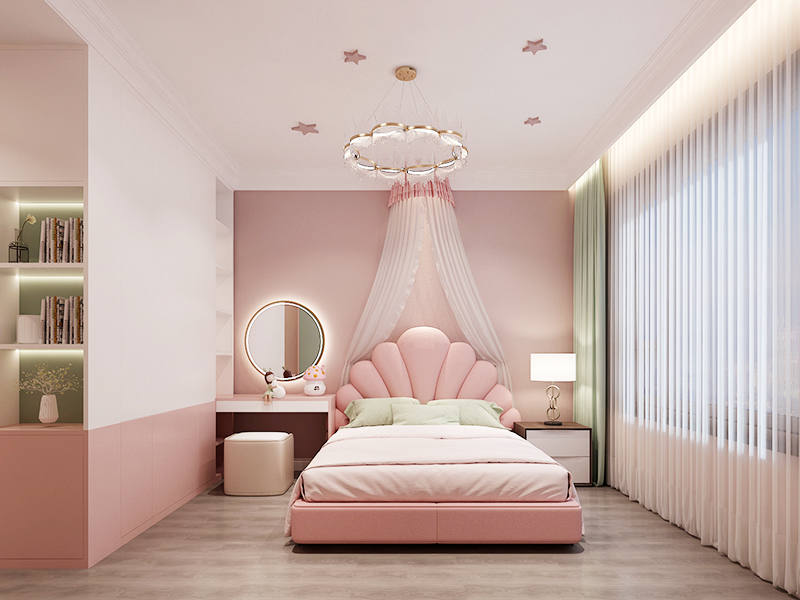 女孩房间在装修时,建议以温馨舒适为主。可以采用简单的硬装设计,用色彩营造空间氛围。女孩房间多采用浅粉色、浅紫色、淡黄色和藕色等温暖柔和的色彩,营造空间的小女生气质。