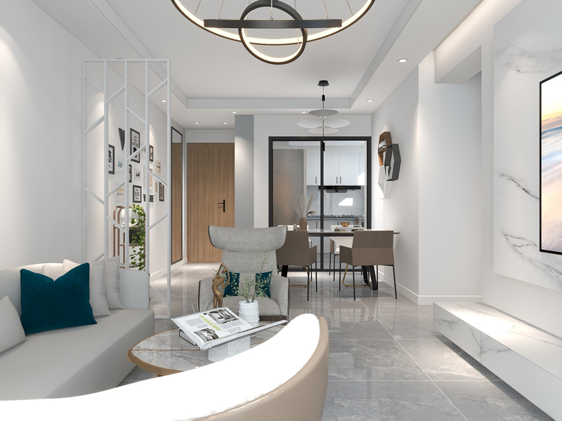 开放式布局拉通区域联动,细节上,造型灯具、软装肌理与景观采光的适配,强化生活质感。