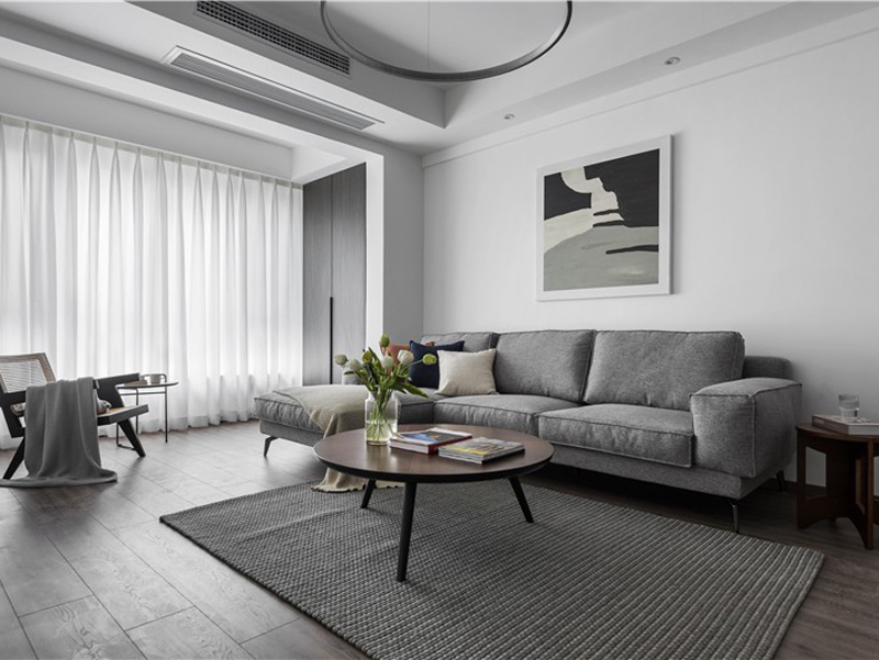 本案例风格定位于现代简约风,灰色的空间色调选择,以休闲舒适为主,清爽雅致,营造出实用的休闲空间。