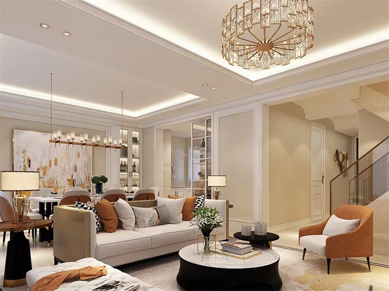 本案以奶油色系串联,借金属灯具、艺术挂画等细节注入设计质感,既满足现代家庭社交、休憩、学习等多元生活需求,又诠释“治愈感与设计感共生”的奶油居家美学。