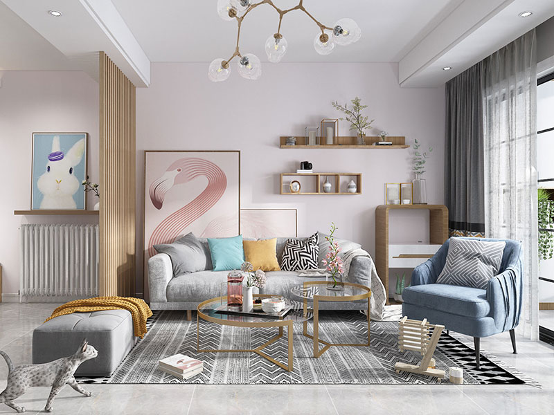 本案是平层户型,定位于北欧风格,设计简洁实用,用简单的线条和色块装饰美化空间,而家具自然简约、人性化,追求一种宁静、淡雅的生活氛围感。