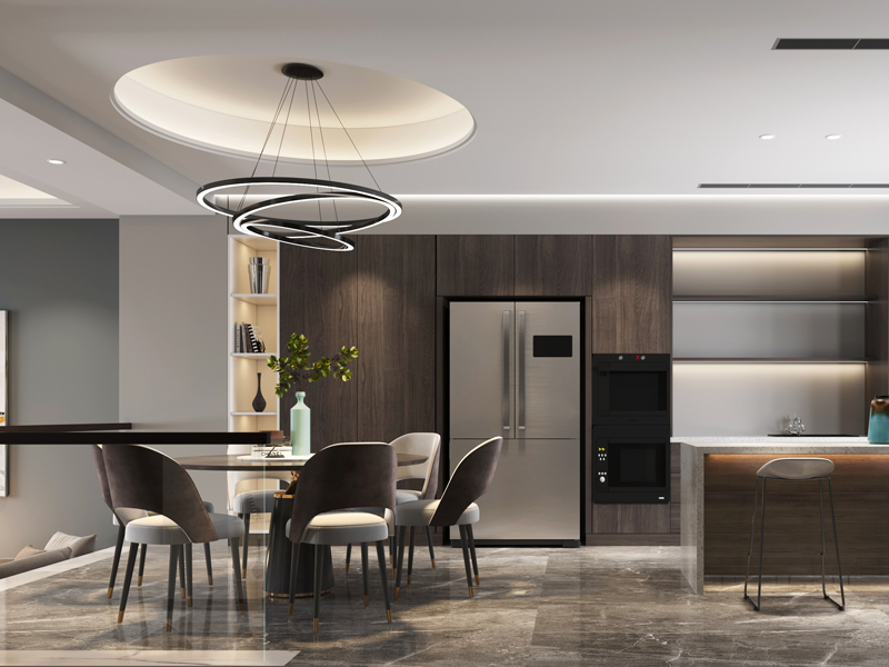 餐厨区域采用开放式布局,提升空间通透感,让就餐氛围更轻松和谐,木色的整体材质选择提升空间格调。