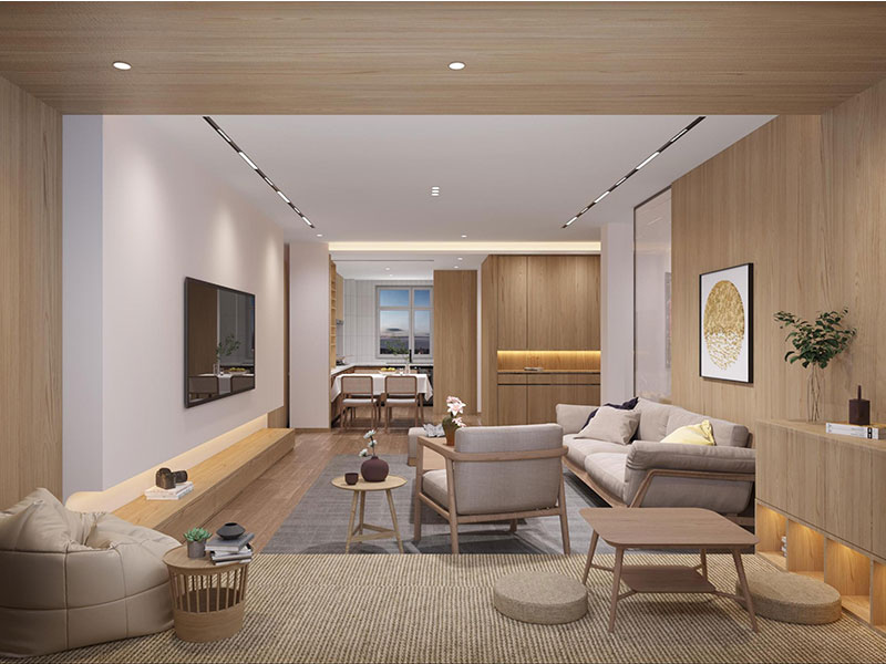 本案定位于日式风格,注重对自然简约和功能性的呈现,巧用大量的木材装饰和光影艺术等,诠释休闲随意的生活意境。