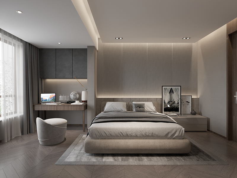 本案整体在极简克制中融合材质质感与功能温度,既彰显出极简风格的干净利落,又通过人性化设计适配多元居家生活场景,打造出兼具雅致格调与舒适体验的极简居所。